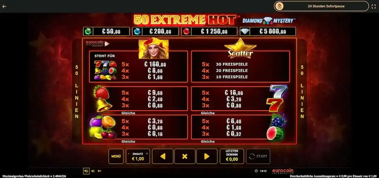 Möchtest du 50 Extreme Hot erst kennenlernen, bevor du echtes Geld in dein Spiel investierst, ist das möglich. Du kannst alle Spiele im Demo-Modus testen.