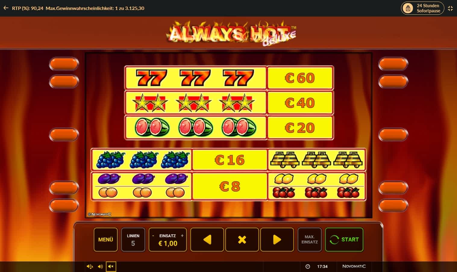 Online-Spielautomaten von Novomatic, die in Online-SpielothekenOnline Casinos unter dem Label Novoline beziehungsweise Greentube erscheinen, zählen zu den beliebtesten Online-Slots. Falls du trotzdem zögerst, kannst du ganz einfach Always Hot Deluxe kostenlos spielen und unverbindlich kennenlernen.