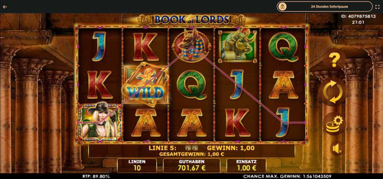 Book of Lords ist ein Bücher-Slot aus dem Jahr 2019, der dich zu einem neuen Abenteuer nach Ägypten einlädt. Die Schätze der Pharaonen locken die blonde Tempelforscherin in dunkle Grabkammern. Dort gibt es wertvolle Gaben an die Tiergötter zu bergen.