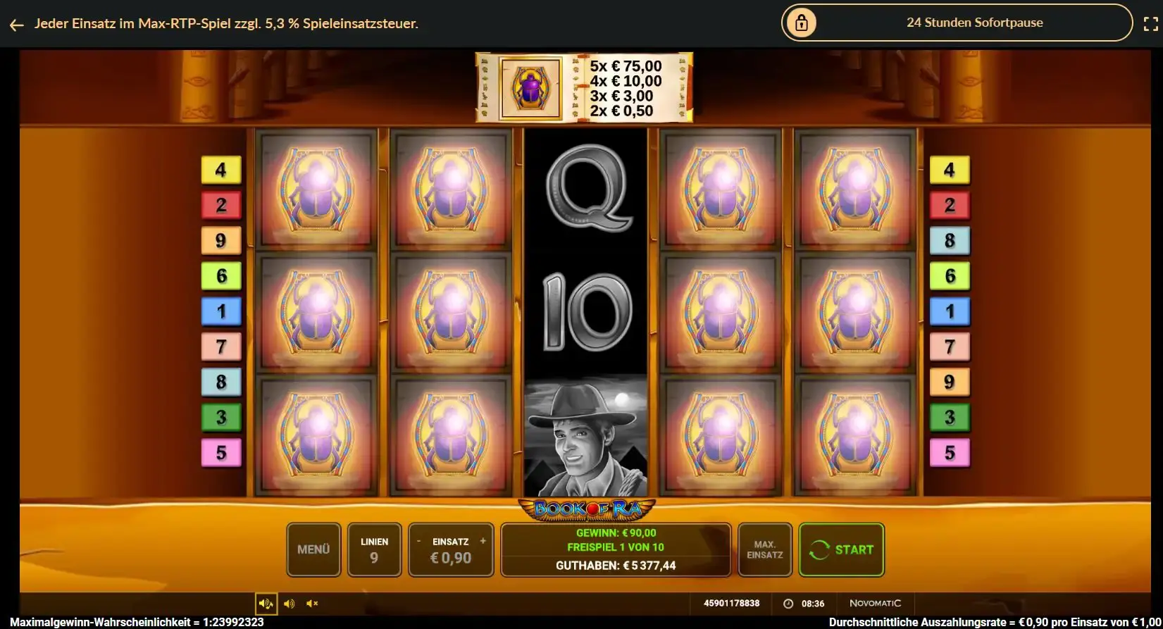 Der RTP von Book of Ra liegt bei 94,26 %. Der Wert erklärt die theoretische Gewinnerwartung über einen langen Zeitraum und basiert auf vielen Millionen Spielrunden.