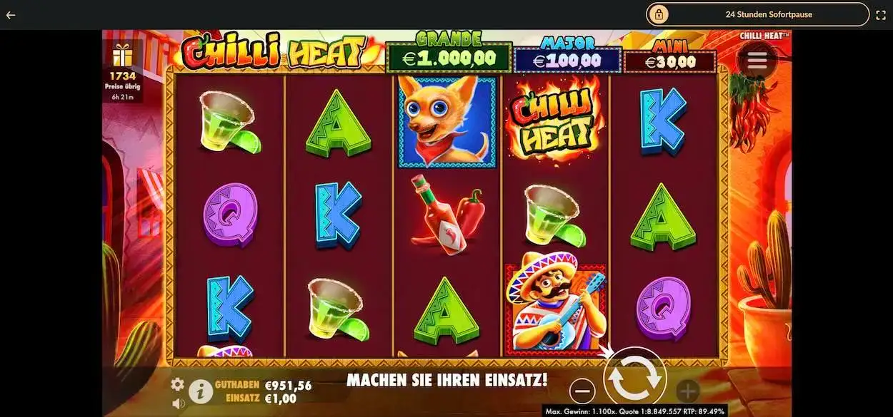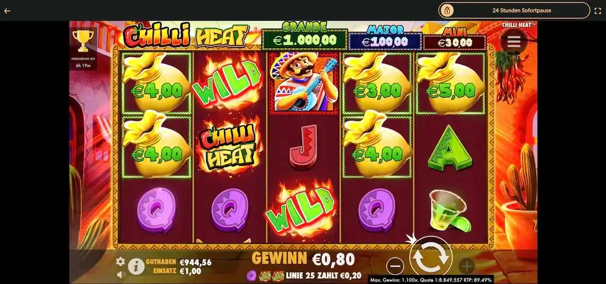 Wenn es um die Entwicklung kreativer Slots geht, dann liegt Pragmatic Play mit ganz vorn. Der Slot Chilli Heat ist einfach genial und macht richtig Laune. Vielleicht ist eine legale Online Spielothek nicht der richtige Ort, um das Tanzbein zu schwingen, aber bei diesem Slot fällt still sitzen schwer.