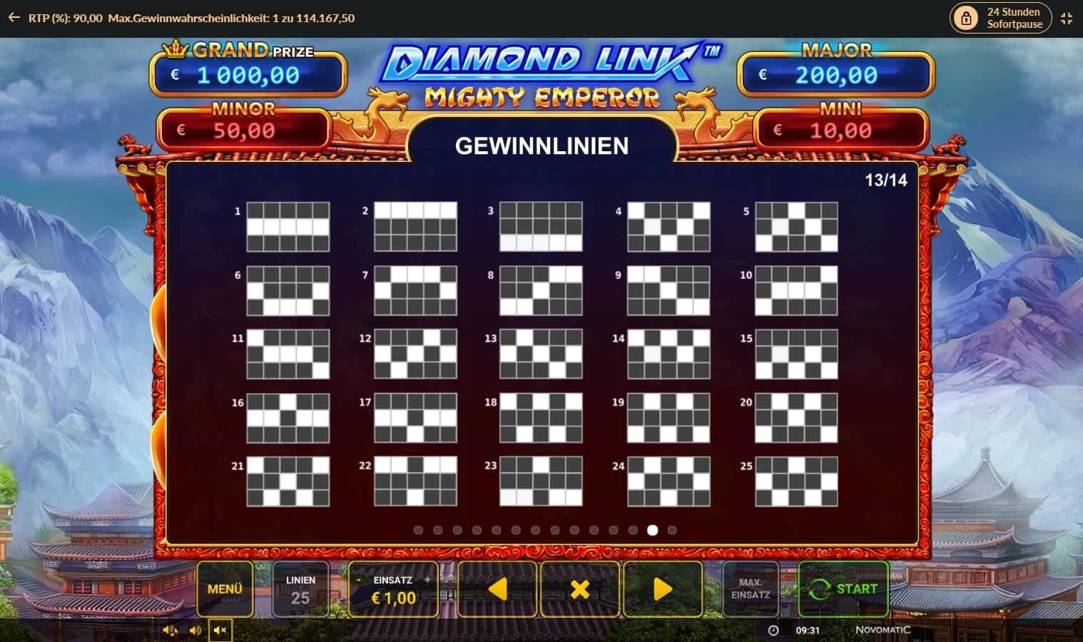 Diamond Link Mighty Emperor spielen: Slot- Aufbau und Gewinnquote