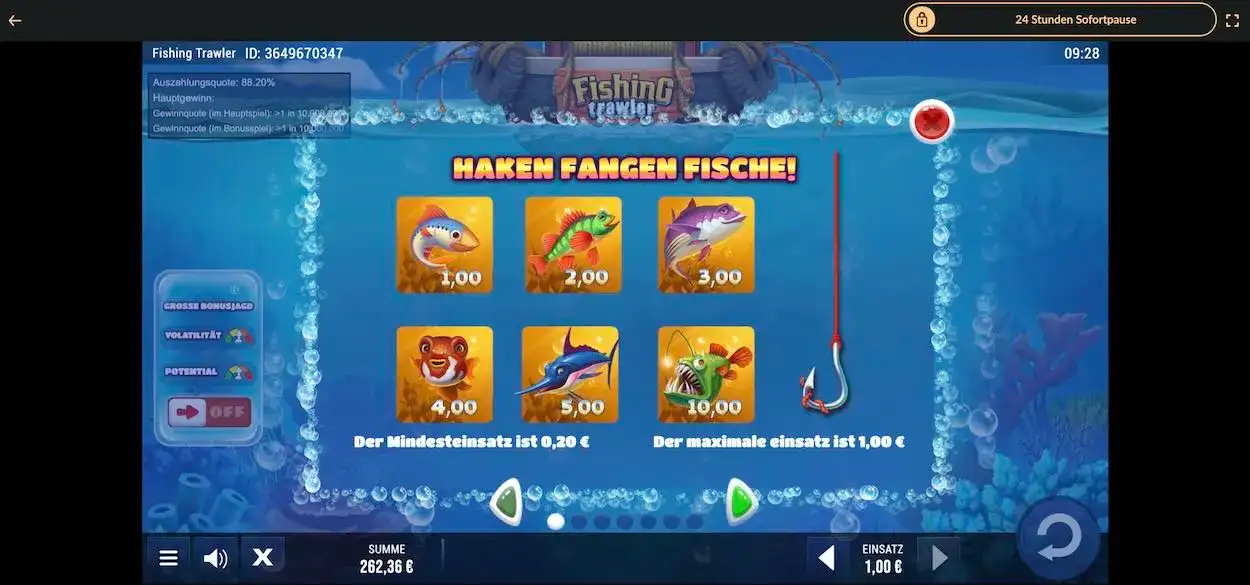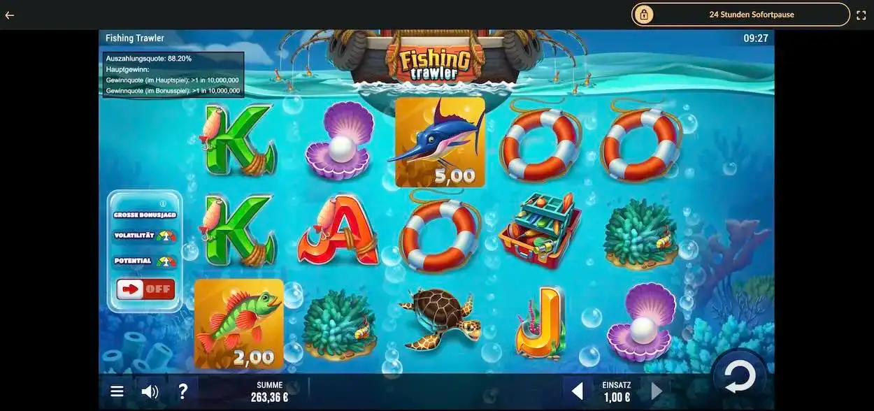 Möchtest du echtes Geld bei Fishing Trawler einsetzen, kannst du dies jederzeit tun. Du musst jedoch beachten, dass das Spiel nur in einer zugelassenen Online-Spielothek in Deutschland legal spielbar ist.