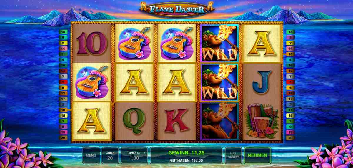 Du findest, es ist Zeit für eine Reise nach Hawaii? Dein Abenteuer ist nur wenige Klicks entfernt, denn du musst nur Flame Dancer online spielen. Entspanne dich am Strand und lass dich von exotischen Feuertänzern in den Bann ziehen. Genieße das Gefühl von Sommer, Sonne und Spaß und tauche ein in die Welt von Flame Dancer. Hier findest du alle wichtigen Informationen zu diesem farbenfrohen Spiel von Novomatic.