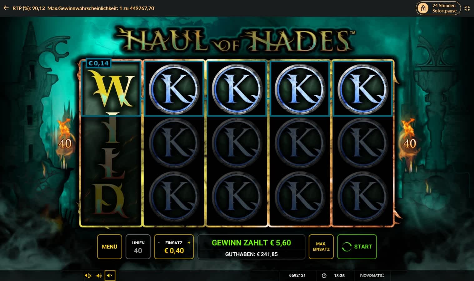Haul of Hades ist ein schauriges Abenteuer für junge Matrosen und alte Piraten. Die düstere Musik begleitet dich auf deiner Schatzsuche und untermalt die Götter-Symbole. Obwohl dich nur ein Freispiel-Feature erwartet, solltest du den Novoline-Slot keineswegs unterschätzen. Hier kannst du beachtliche Gewinne einfahren! Also leg los und hol dir den längst verdienten Schatz!