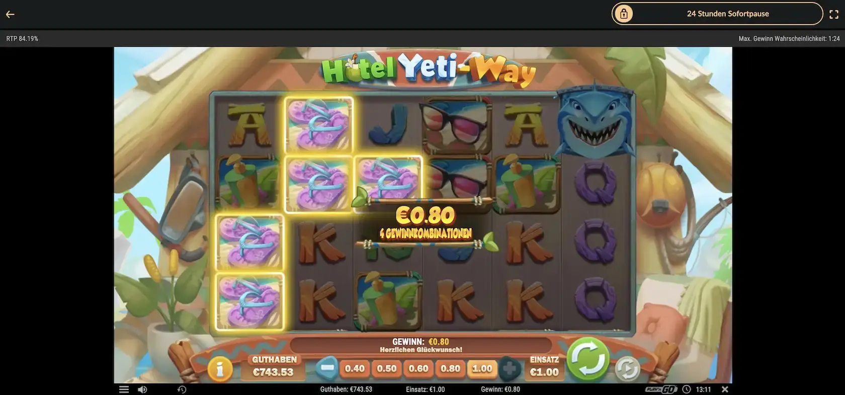 Den doppelten Einsatz erzielst du mit der Sonnenbrille und dem Sonnenhut als Gewinn, wenn diese Symbole sechsmal auf einer Gewinnlinie landen. Der Hai und das Wild-Symbol belohne dich mit dem bis zu dreifachen Einsatz.