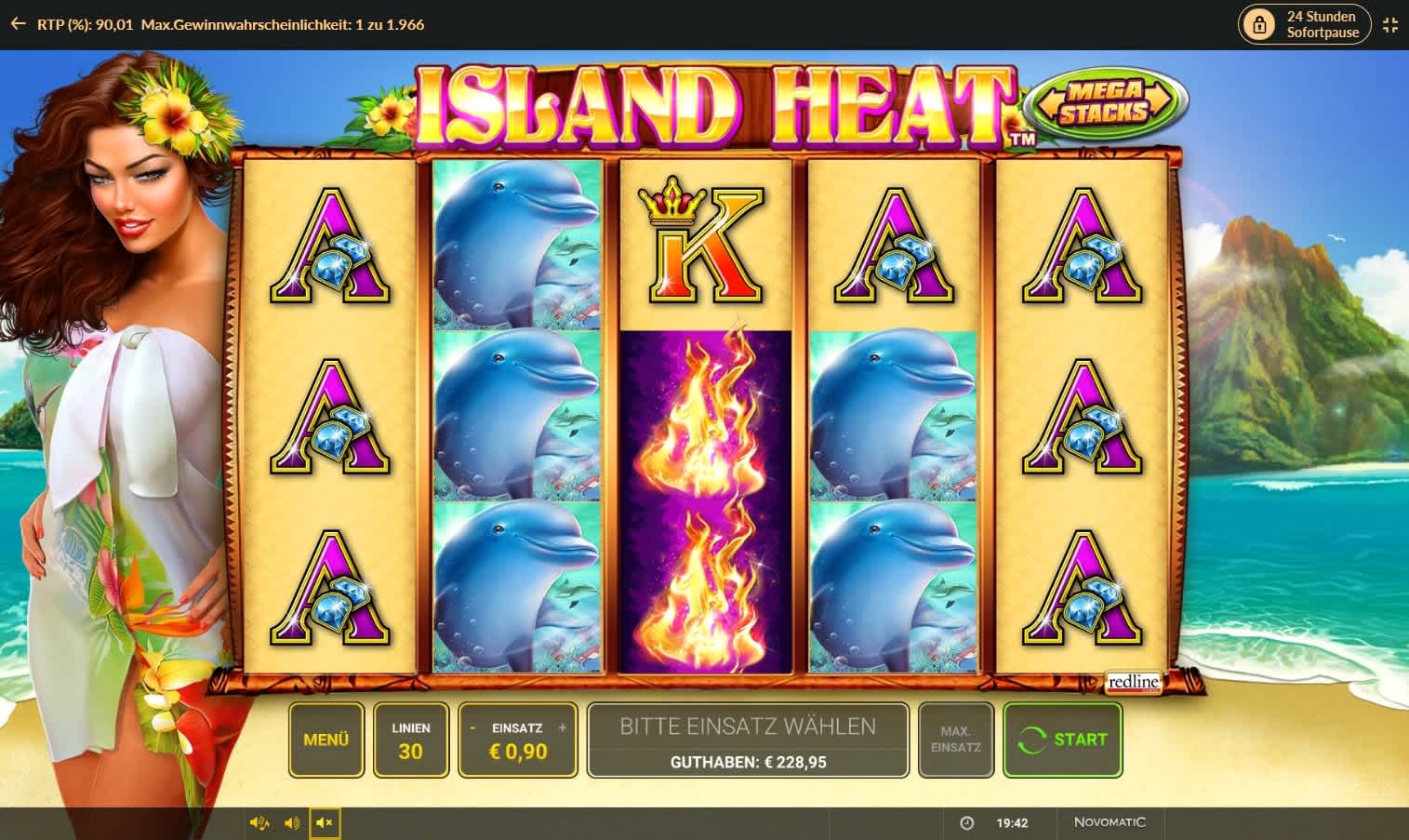 Ich, Jack Pott, habe im Novomatic-Slot Island Heat nach Goldbarts verborgenen Schatz gesucht. Leider ist es mir bisher nicht gelungen, ihn zu finden. Bist du mutig genug und begibst dich auf ein Abenteuer? Steuere dein Schiff auf die pazifische Insel und lass dich von der paradiesischen Kulisse aus blauem Meer und goldenem Sand mitreißen. Möglicherweise ist dir der Slot bereits vom letzten Spielotheken-Besuch an Land bekannt, doch mittlerweile ist Island Heat auch online verfügbar.
