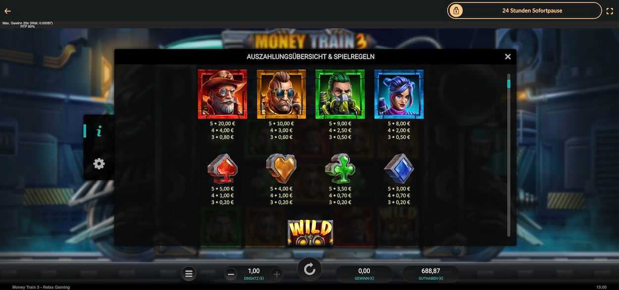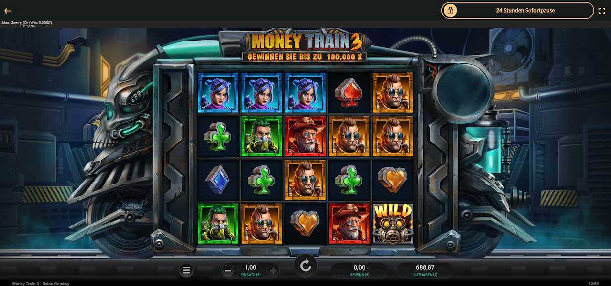 Money Train 3 von Relax Gaming erinnert mit seiner aufwendigen Gestaltung an ein PC-Game. Die beste Lösung, das Spiel ohne Risiko zu testen, ist die Nutzung der Moneytrain 3 Demo. Du hast die Möglichkeit, Spielgeld-Einsätze zu platzieren und musst kein echtes Geld einsetzen.