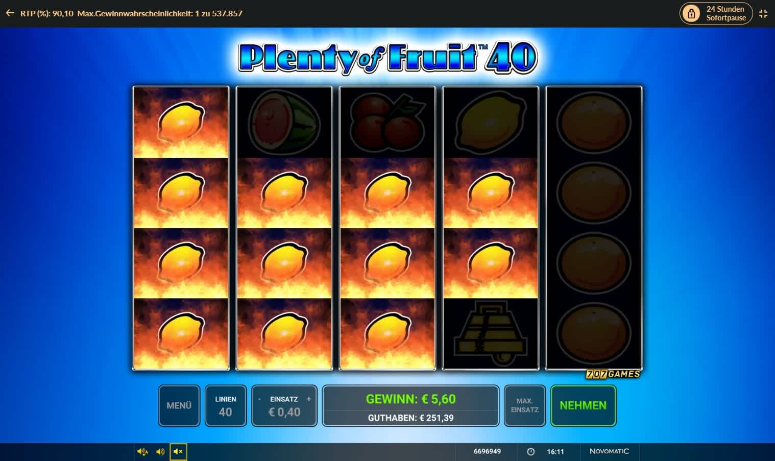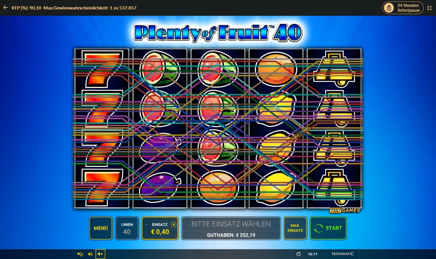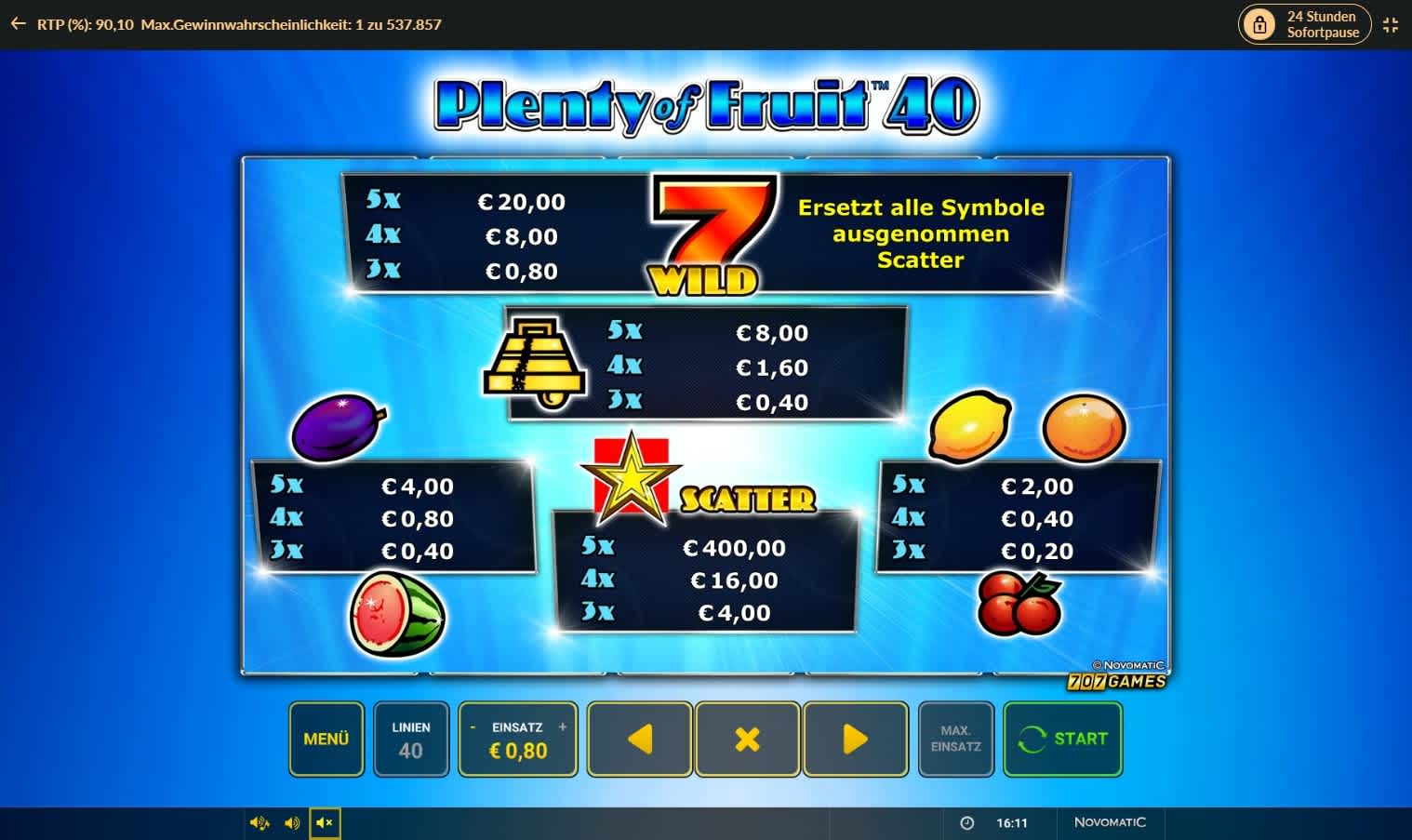 | Höchstgewinn- wahrscheinlichkeit | 1 : 33333333333 |