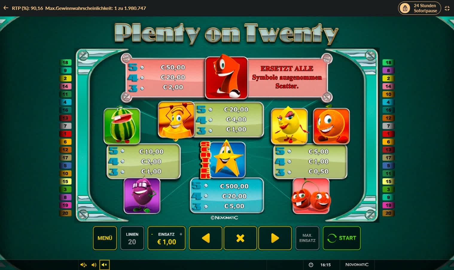 Plenty on Twenty Demo: Version für ein kostenloses Online-Slot-Erlebnis