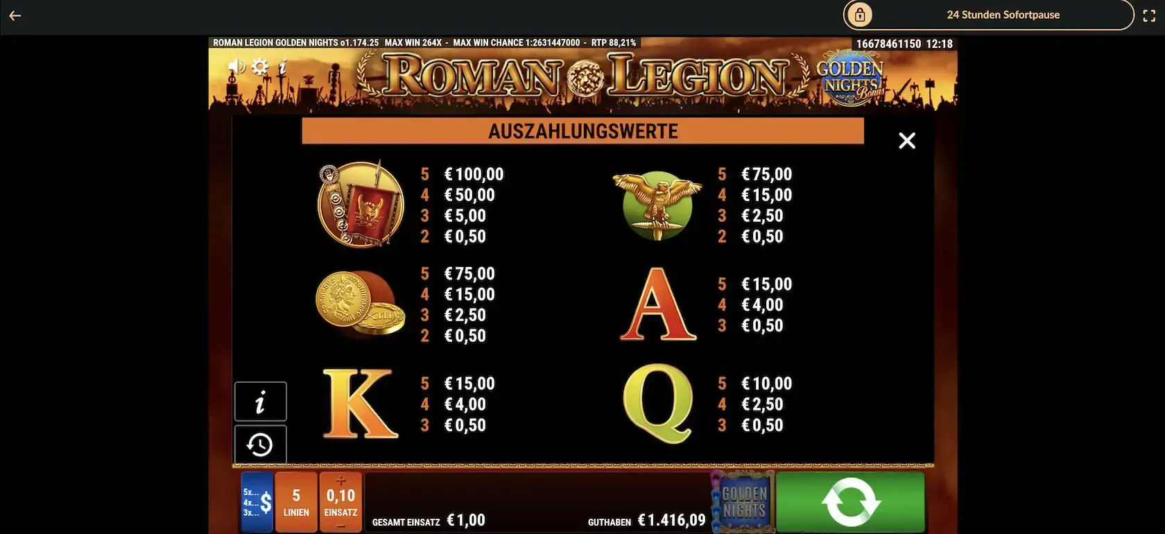 | Spielautomat: | Roman Legion Golden Nights |