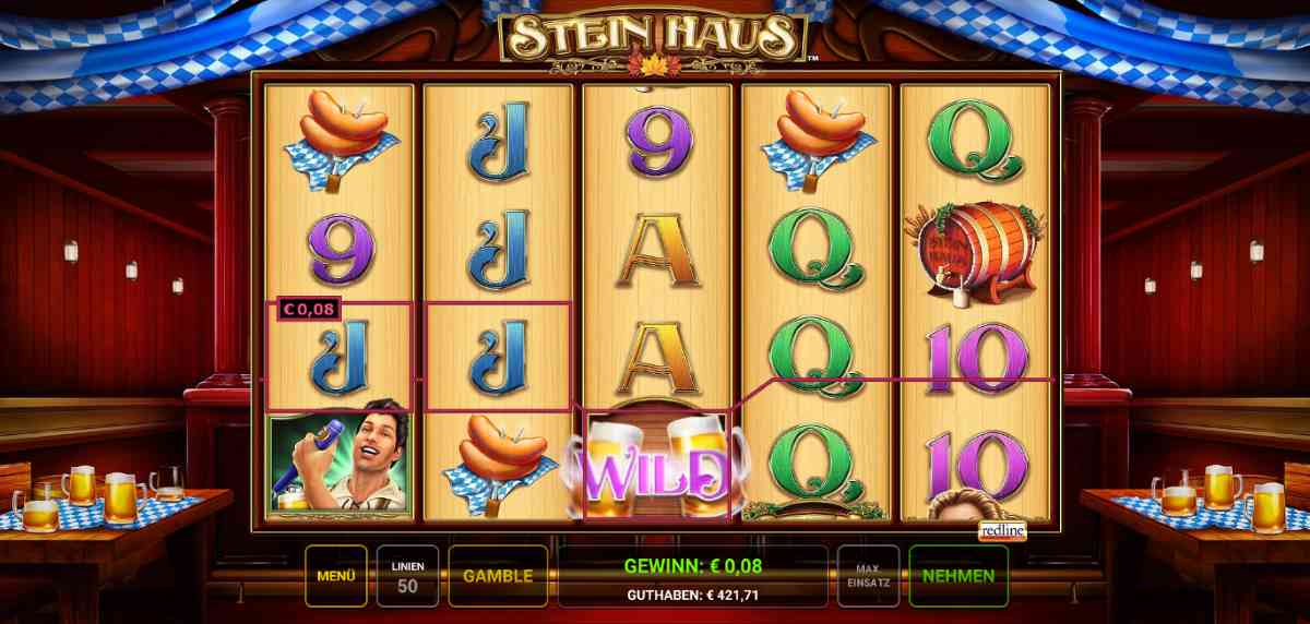 Das Logo des Stein Haus-Slots ist der Scatter. Wenn es dreimal erscheint, darfst du dich freuen. Du bekommst zehn Freispiele, die für extra Cash sorgen. Außerdem gibt es bei Stein Haus ein Wild-Symbol (die Bierkrüge). Es ersetzt andere Symbole und kann weitere Gewinnkombinationen erzeugen. Spiele Stein Haus wie in einer echten SpielbankCasino und sichere dir den großen Schatz!